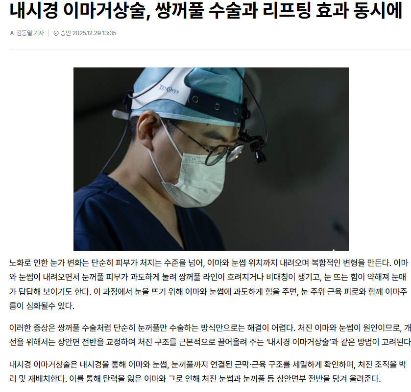 내시경 이마거상술, 쌍꺼풀 수술과 리프팅 효과 동시에